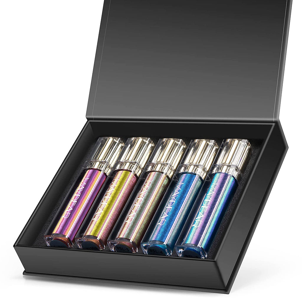 Maydear Chameleon Lipstick 5 Colors Set, Long Lasting Waterproof Colourful Diamond Shimmer Lip Gloss for Women Girls Makeup kit